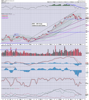 Right now, only a break back up the recent high of $644 would make me bullish on AAPL. It remains some 40% undervalued compared to the main market, but..since when did the market take account of 'fair value' these days?